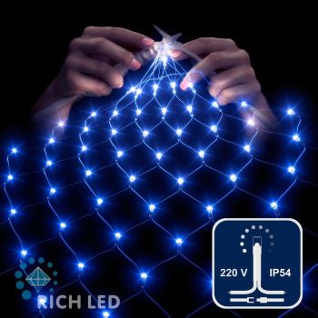 Светодиодная сетка Rich LED 2*1.5 м, синяя,192 LED, 220 B, прозрачный провод.