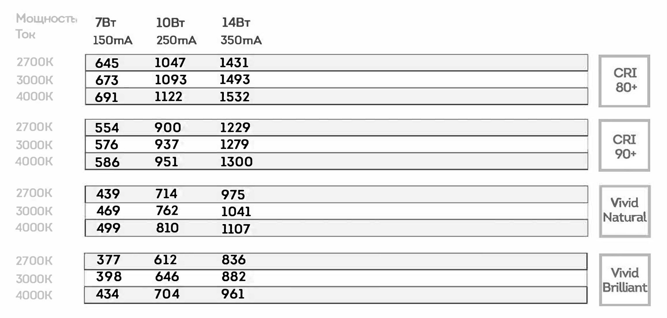 Серия VIVID - укомлектована светодиодами CITIZEN со специальным индексом цветопередачи, разделяется: