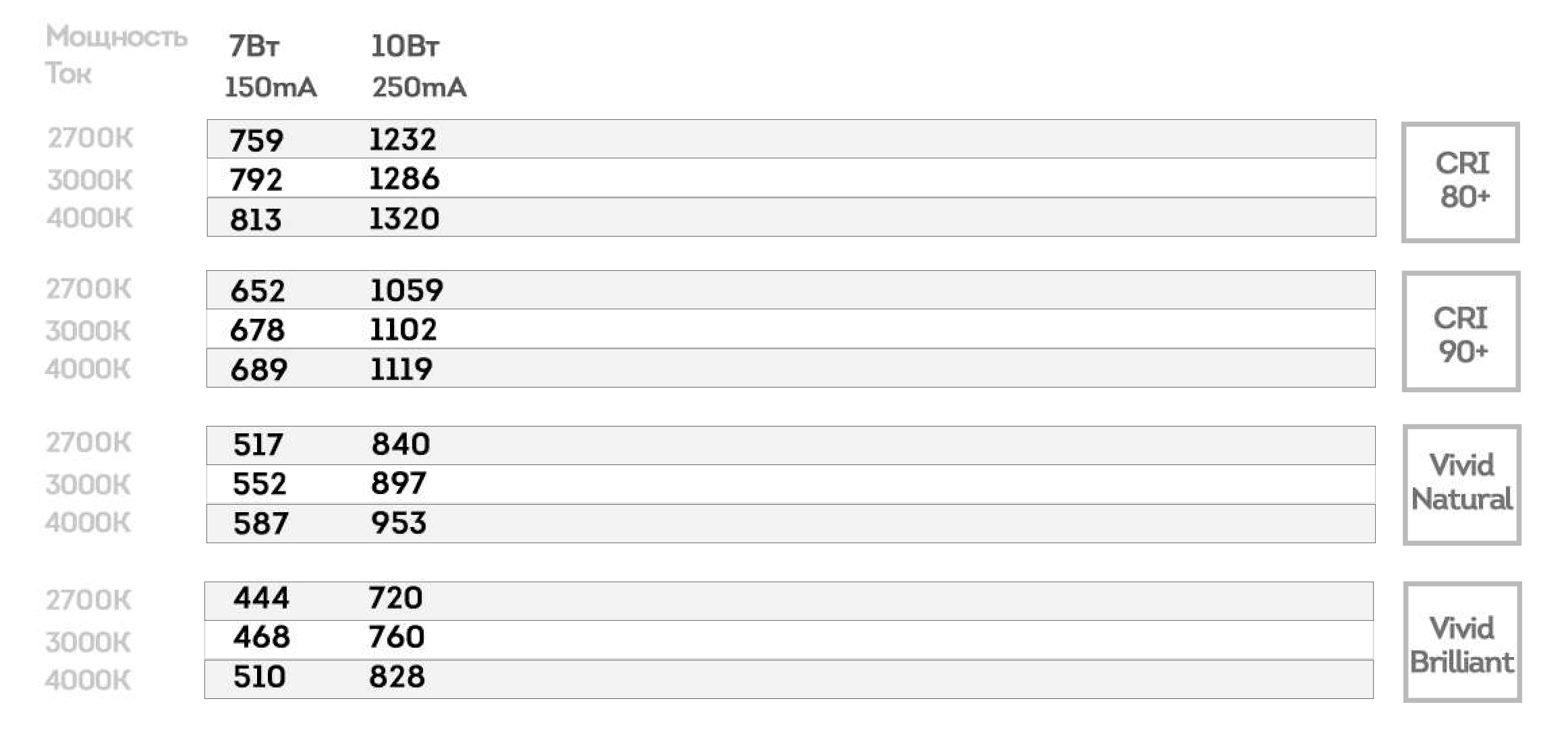 Серия VIVID - укомлектована светодиодами CITIZEN со специальным индексом цветопередачи, разделяется: