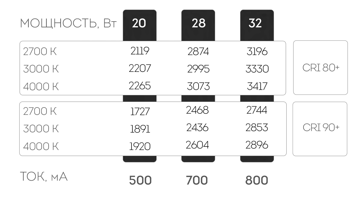 Серия CRI 80 - укомплектована светодиодами с индексом цветопередачи (CRI) Ra 80+
