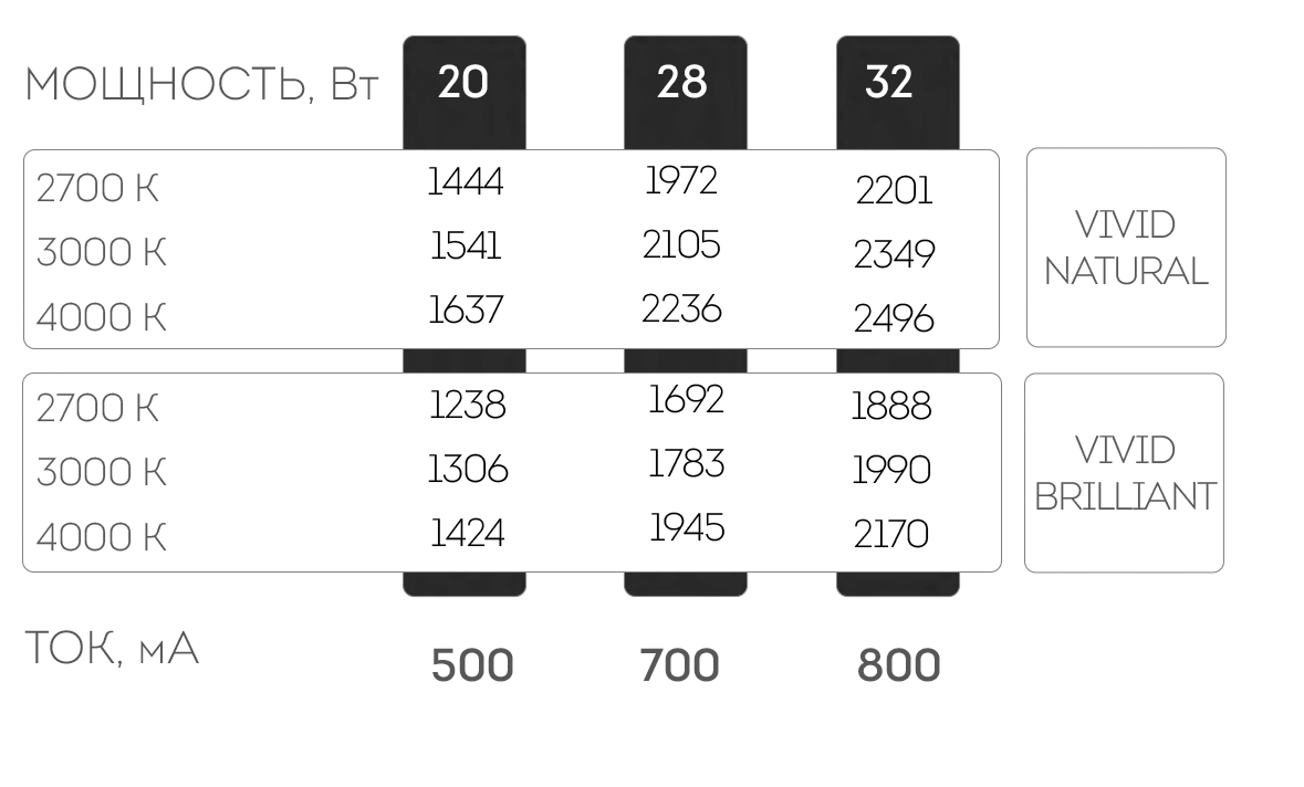 Серия VIVID - укомлектована светодиодами CITIZEN со специальным индексом цветопередачи, разделяется: