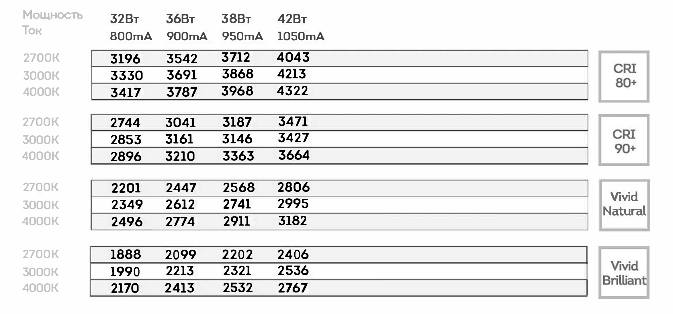 Серия VIVID - укомлектована светодиодами CITIZEN со специальным индексом цветопередачи, разделяется:
