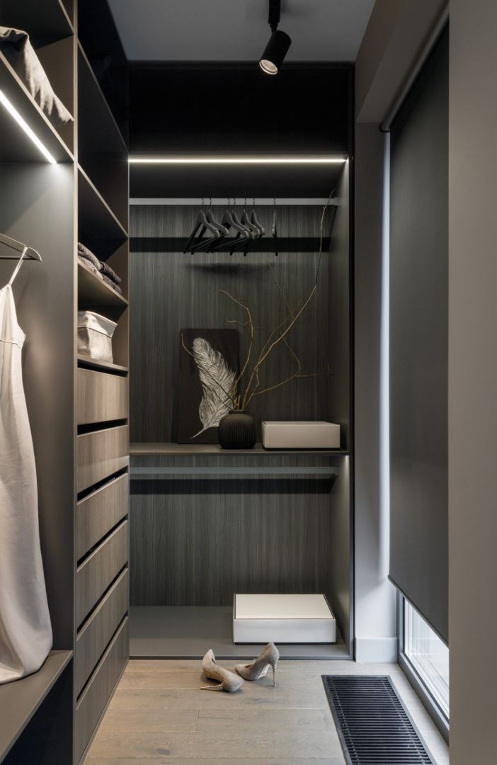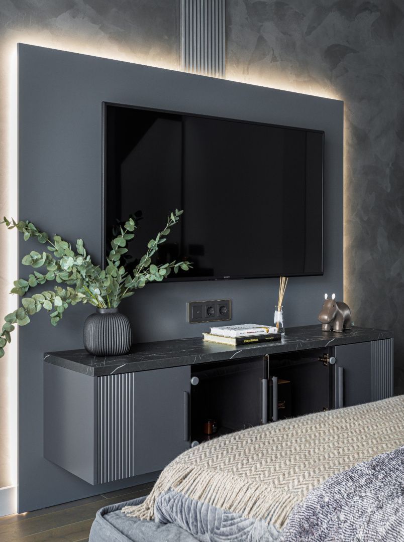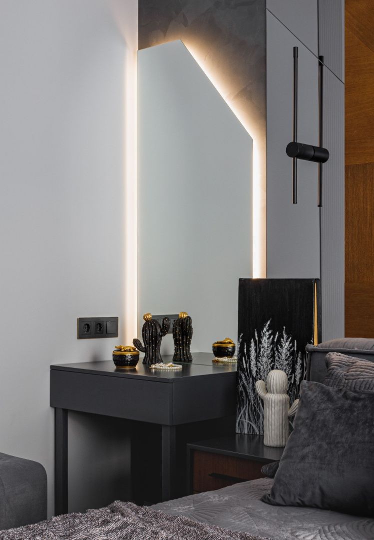 В проекте используются светодиодные ленты Arlight белого теплого цвета свечения (3000 К) для добавления уюта и мягкости серой цветовой гамме.