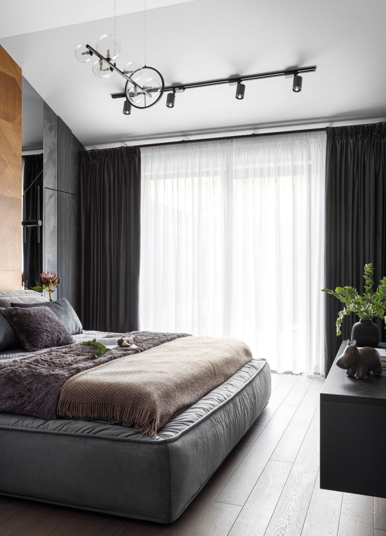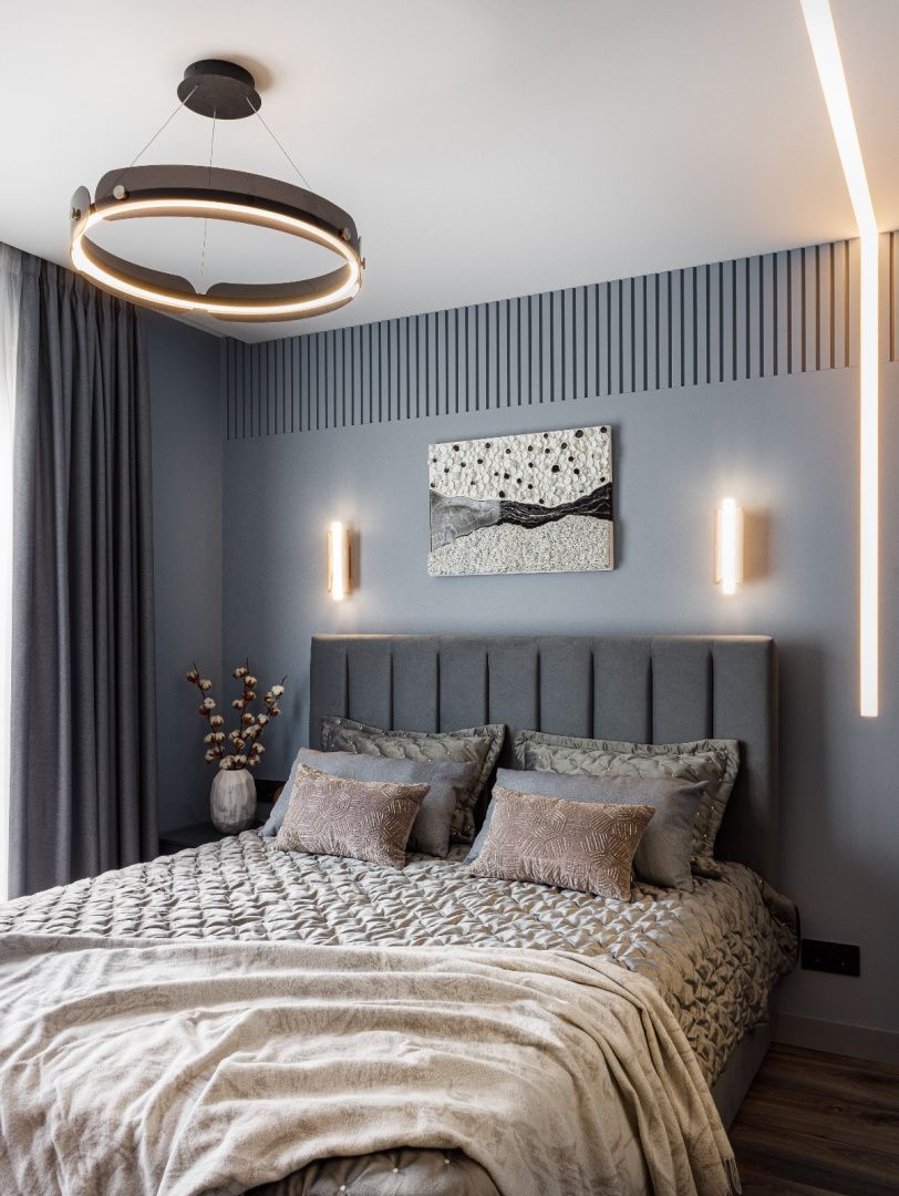 Видовые решения, основанные на профилях, были использованы в гостевой комнате. Потолочная линия освещения, спускающаяся на стену, не только освещает пространство, но и придает завершенность дизайну. Применение профилей KLUS POWER для ГКЛ потолков и специальных соединителей PLS ZM NA позволило воплотить это решение.