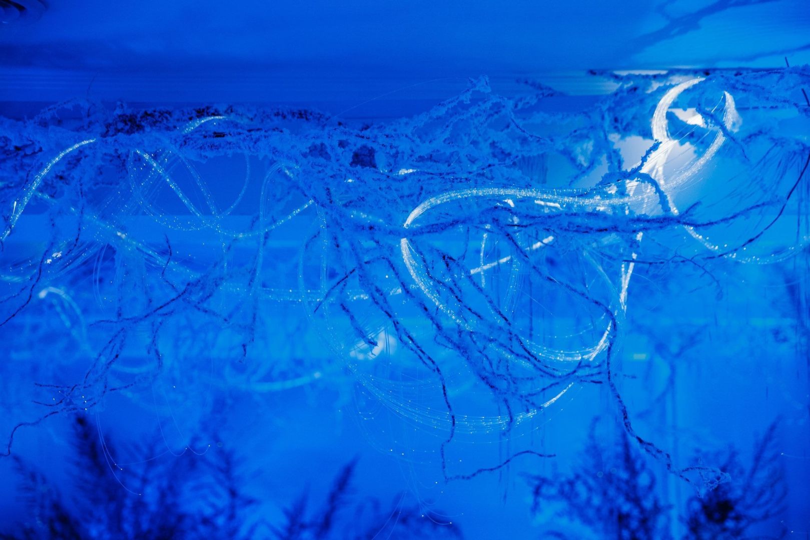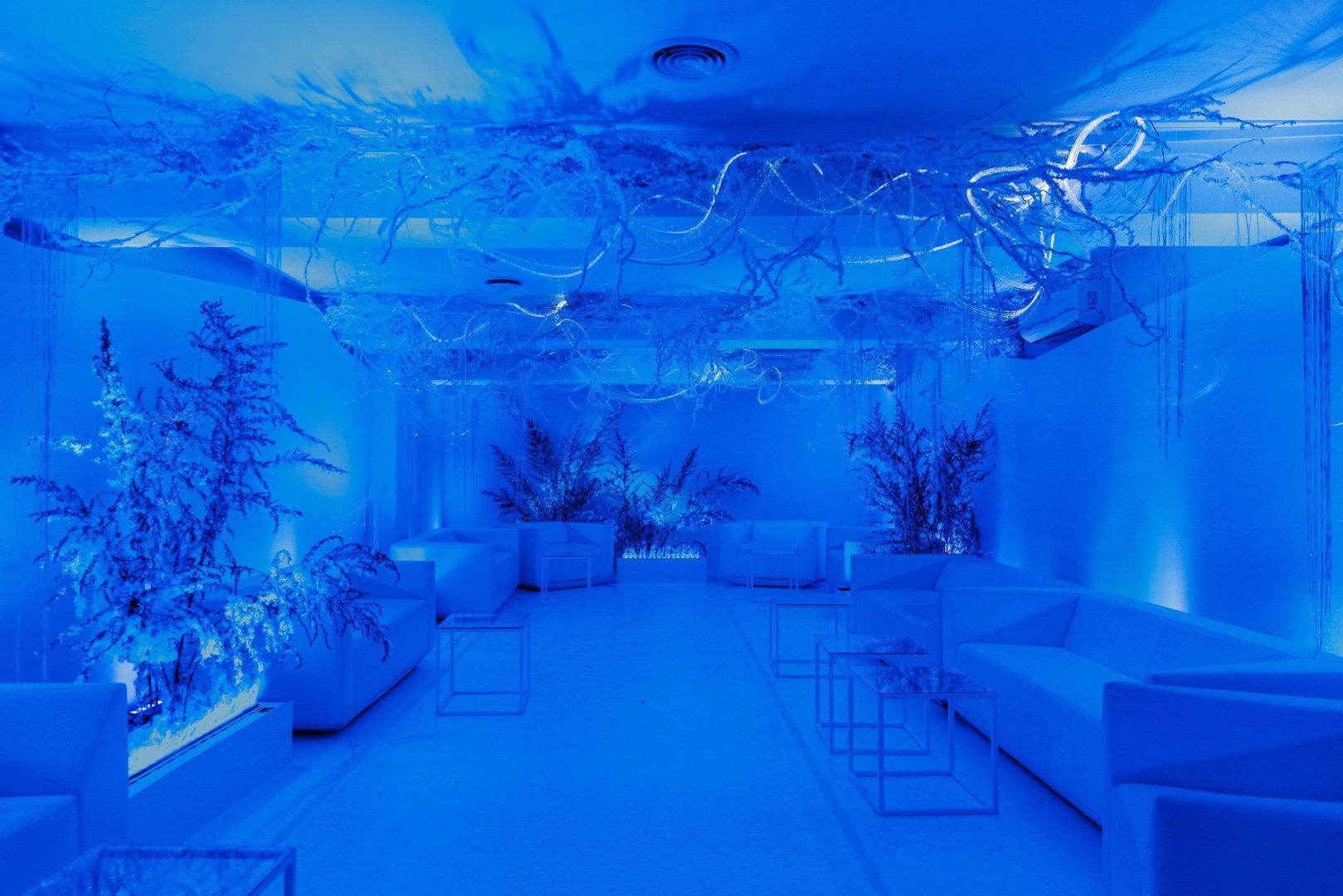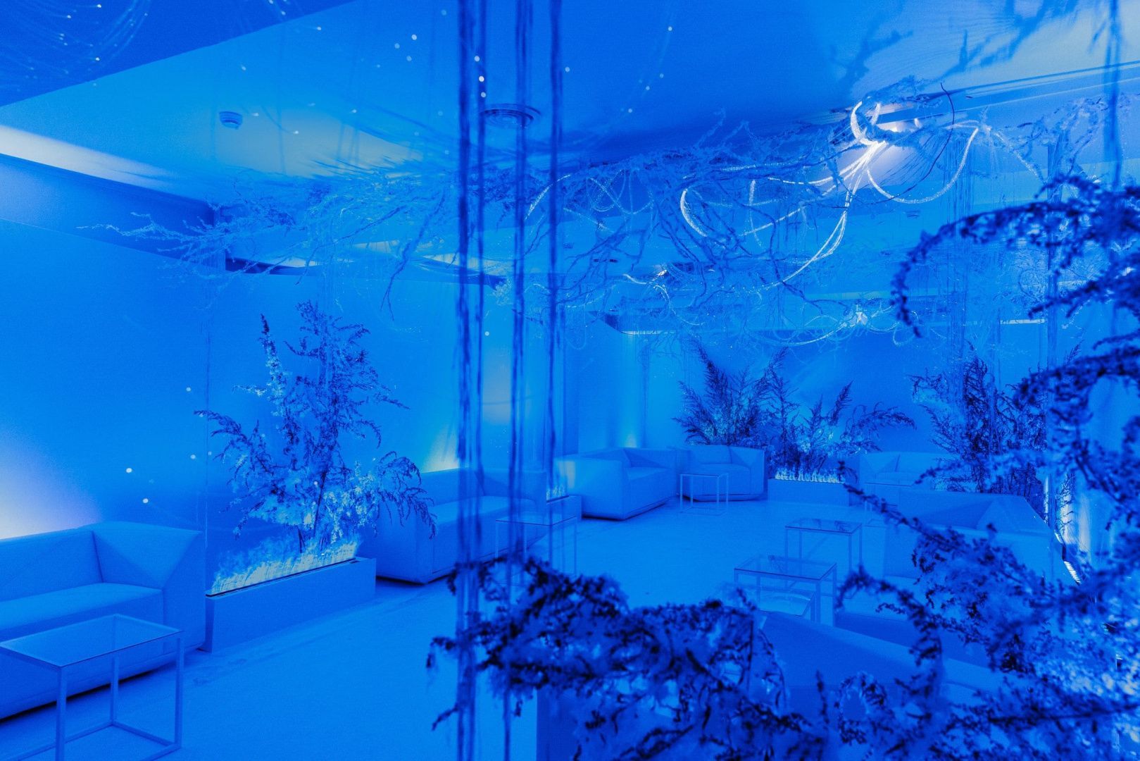 Световое оформление мероприятий - задача, которая требует многоуровневого подхода и учета целой плеяды переменных: от тематики праздника до характеристик и возможностей используемого пространства. Для декорирования лаундж зоны мы использовали оптоволоконную нить бокового свечения с насечками. Благодаря удаленности источника света она безопасна: не нагревается и не проводит электричество, а композиция ее расположения может быть легко переоформлена даже перед началом ивента, позволяя импровизировать по настроению и ожиданиям заказчика. Программируемые источники света для оптоволокна не только открывают возможности для создания собственных оттенков свечения, но и позволяют менять их по своему усмотрению уже в процессе мероприятия, создавая волшебную атмосферу праздника.