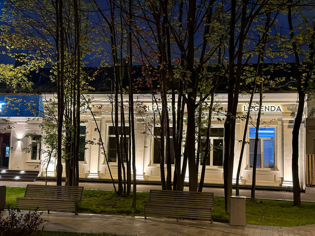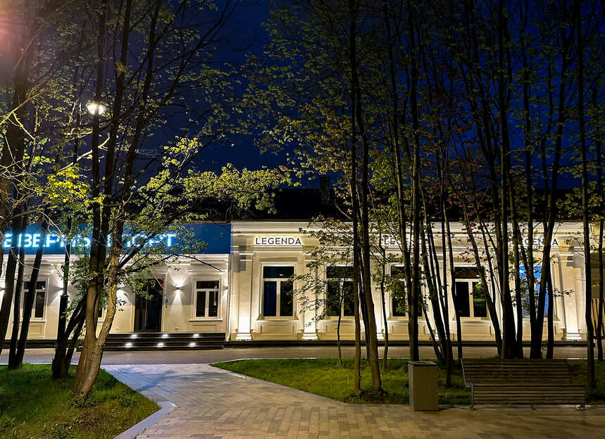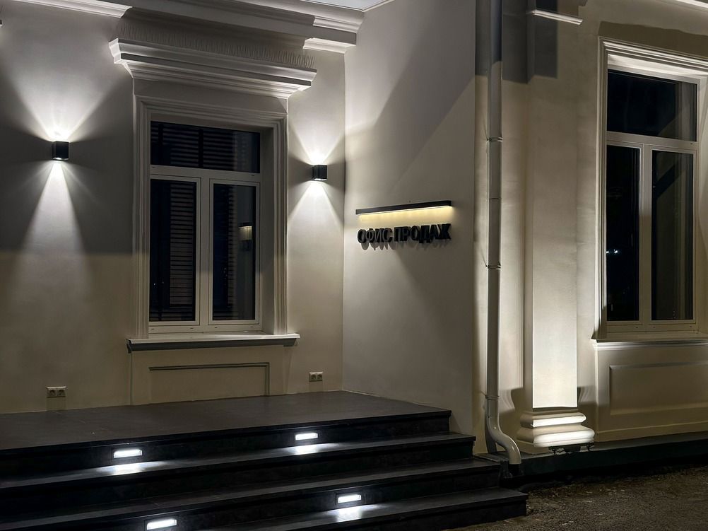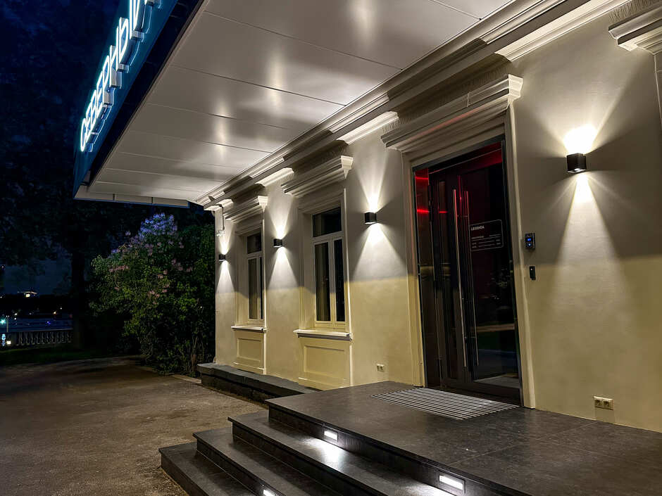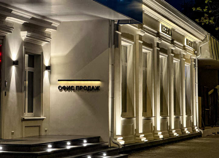 Для оформления архитектуры и навигационных были использованы светильники с разным назначением, но общим эффектом — чистый, тёплый, продуманный свет.