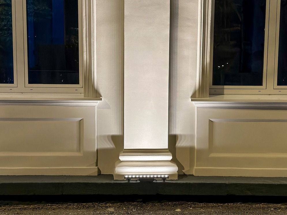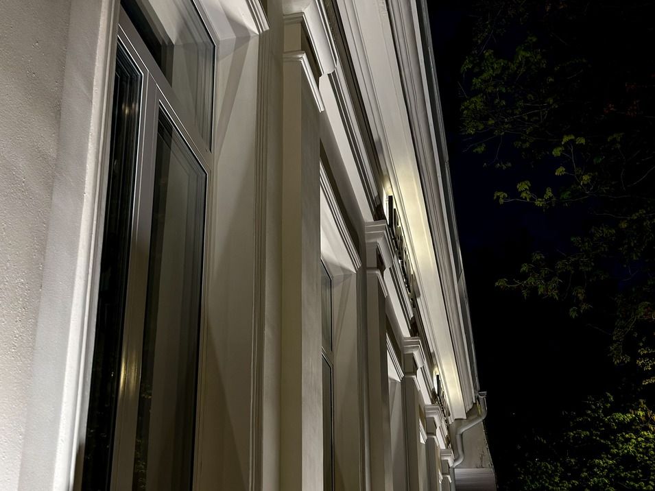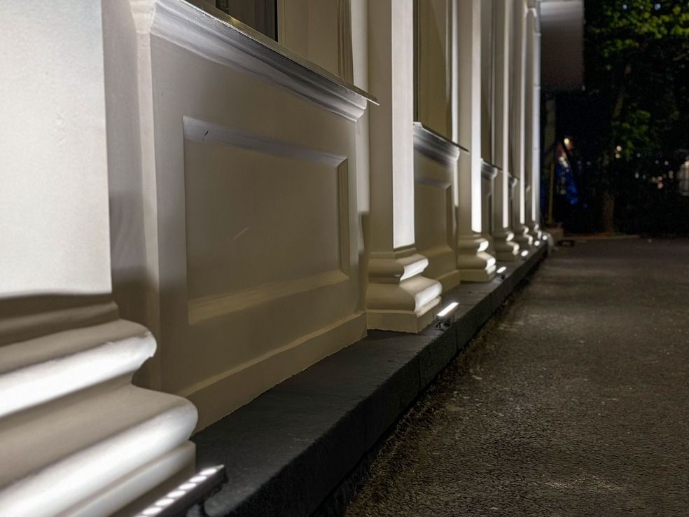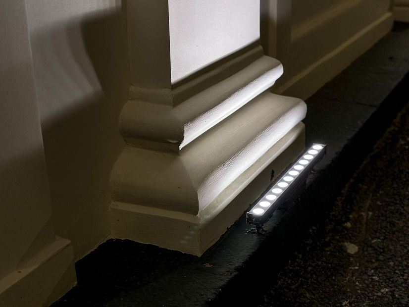 LINE 12 Вт — ультратонкие линейные прожекторы с узкой оптикой (15×60°) для создания выразительной подсветки фасада и архитектурных акцентов. Надёжный монтаж, влагозащита IP65 и последовательное соединение делают их универсальным решением для уличной среды.