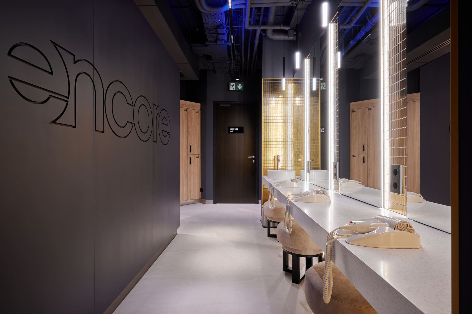 Являясь фитнес-центром премиум класса, Encore Fitness включает в себя несколько этажей разнообразных досуговых и тренировочных зон со специфическими для каждой из них требованиями к освещению.