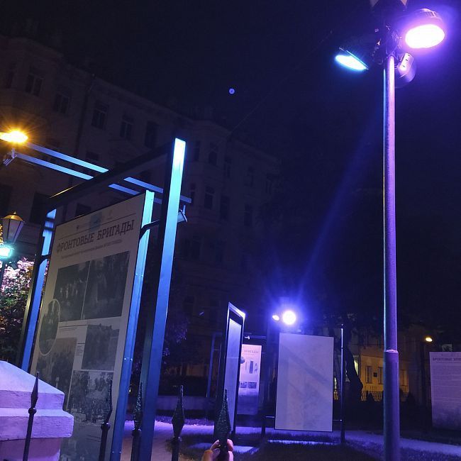 Освещение парков и проектирование света в этой области может не только подчеркнуть красоту окружающей природы и экспозиций, но и открыть их новый облик в темное время суток. Мы хотим поделиться с вами нашим реализованным проектом освещения «Сквера Полководцев». Наша локация - тихий и укутанный зеленью небольшой скверик в центре Москвы со скамейками и стендами экспозиции Росконцерта, на которых представлены фотографии и описания, охватывающие разные жанры искусства: от музыки и театра до архитектуры и живописи. С нашим оборудованием сейчас сквер сияет вечером разноцветной динамической подсветкой. Плавная смена цветов освещения привлекает внимание к небольшому и уютному пространству, пробуждает желание зайти отдохнуть, наслаждаясь атмосферой или же ознакомиться с содержанием арт-стендов.