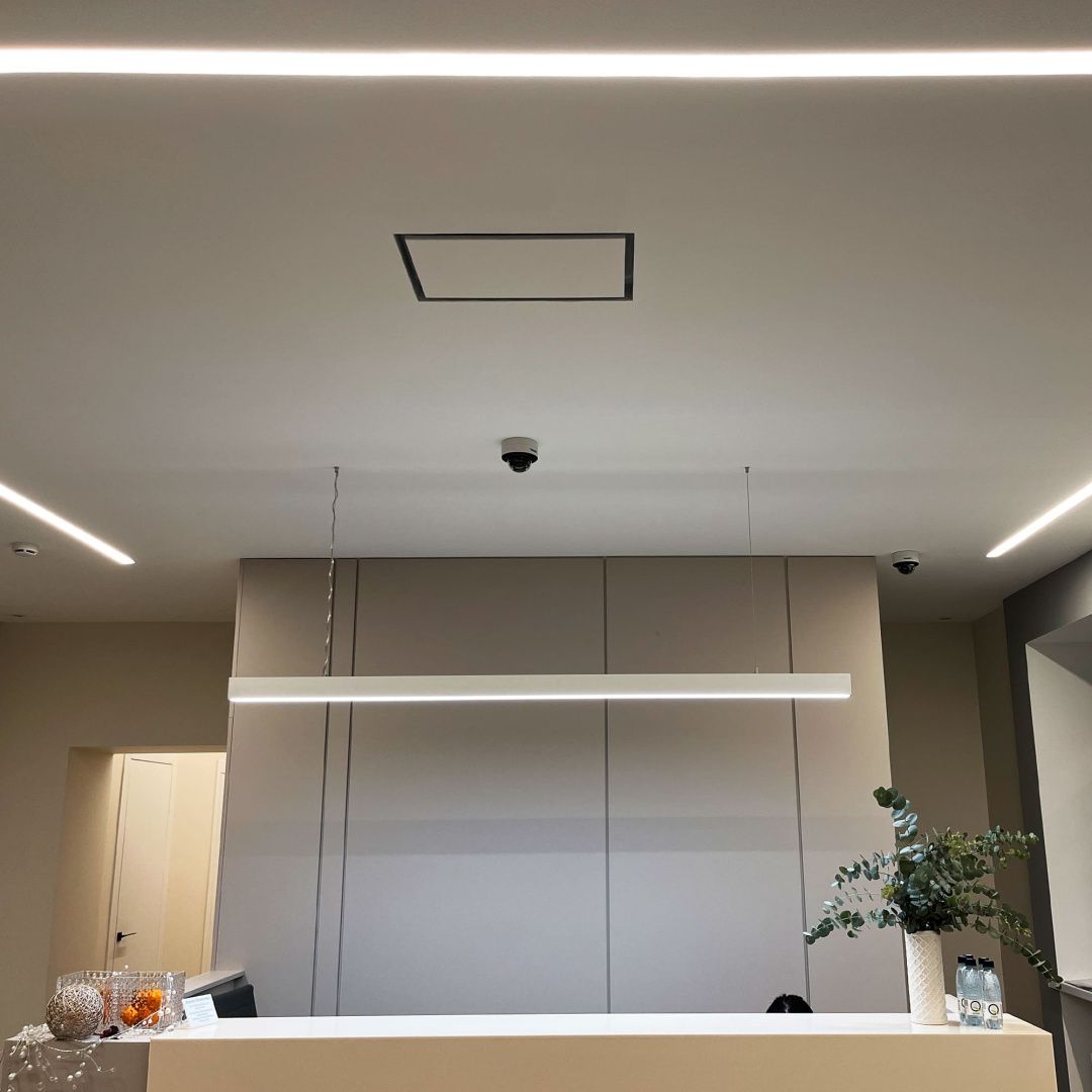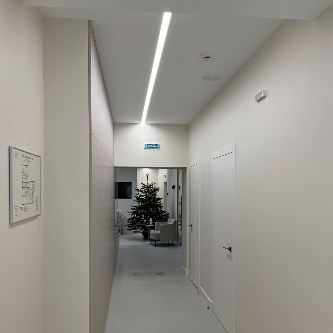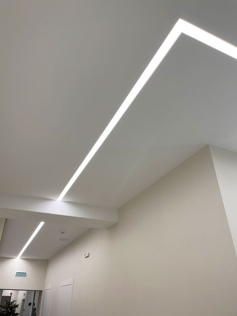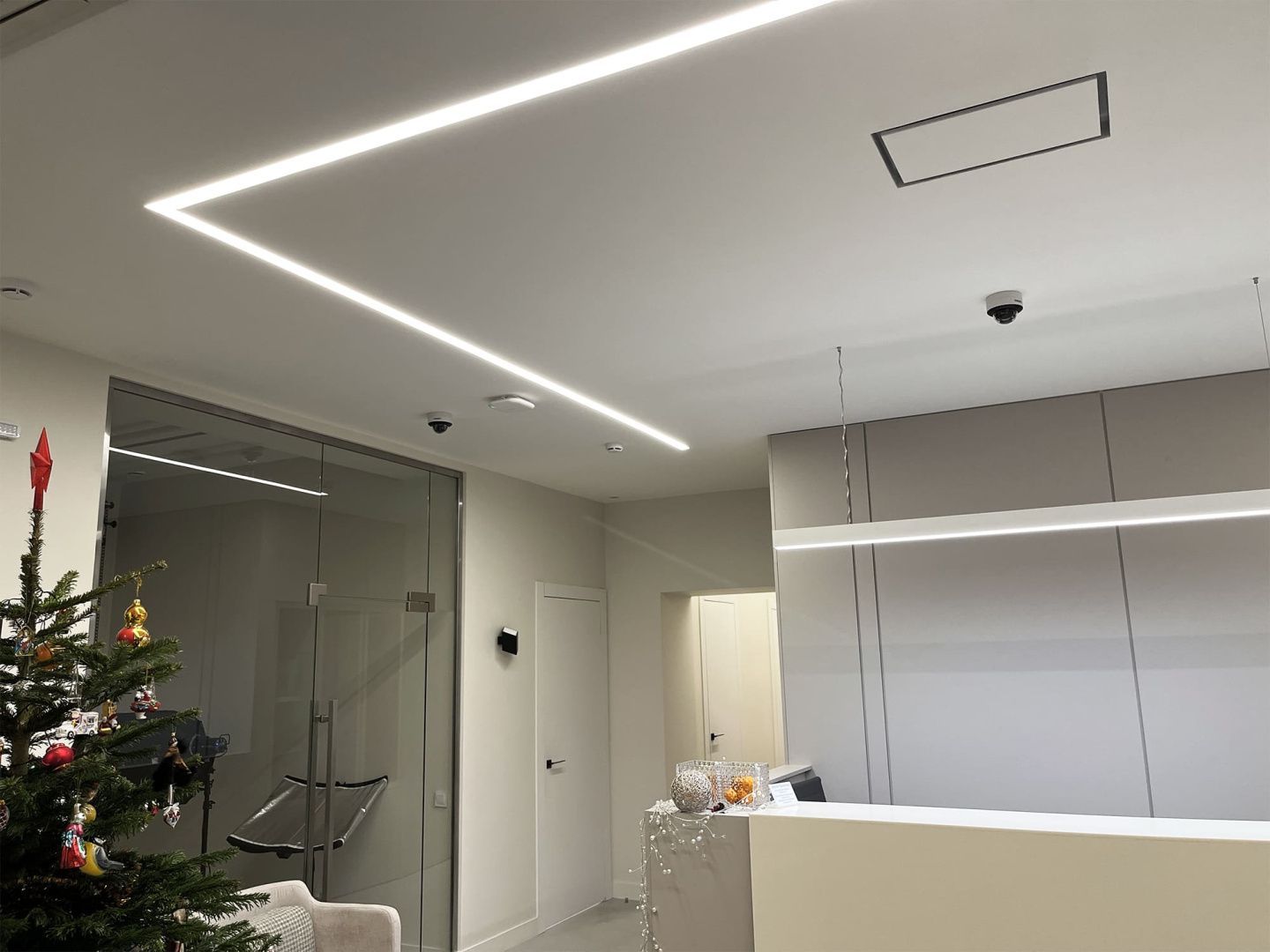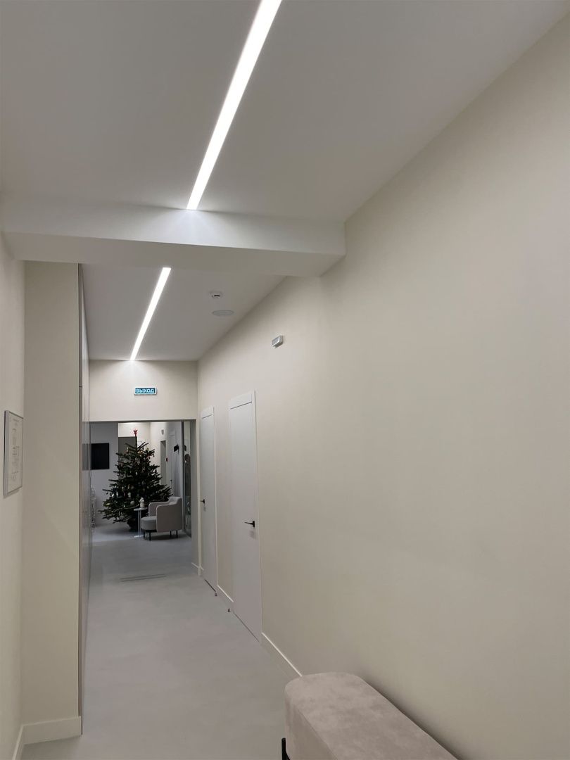 3.Для освещения зоны ресепшен, а также коридоров было предложено использовать светильники на основе встраиваемых профилей в ГКЛ.