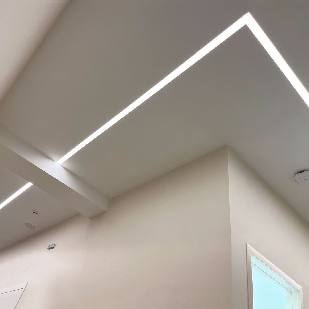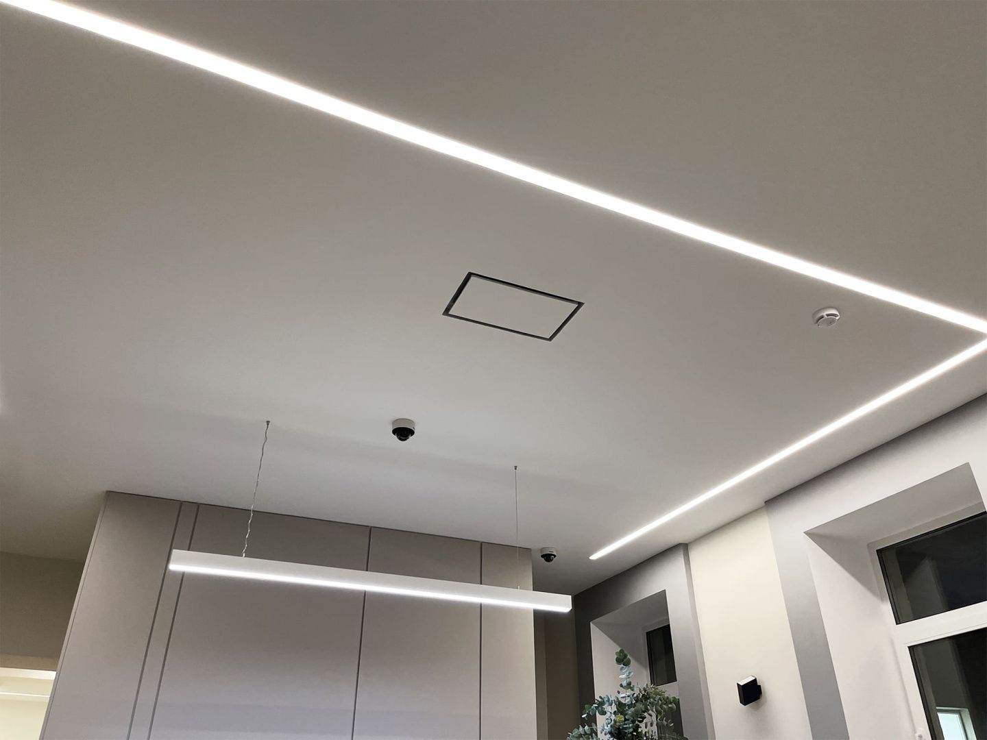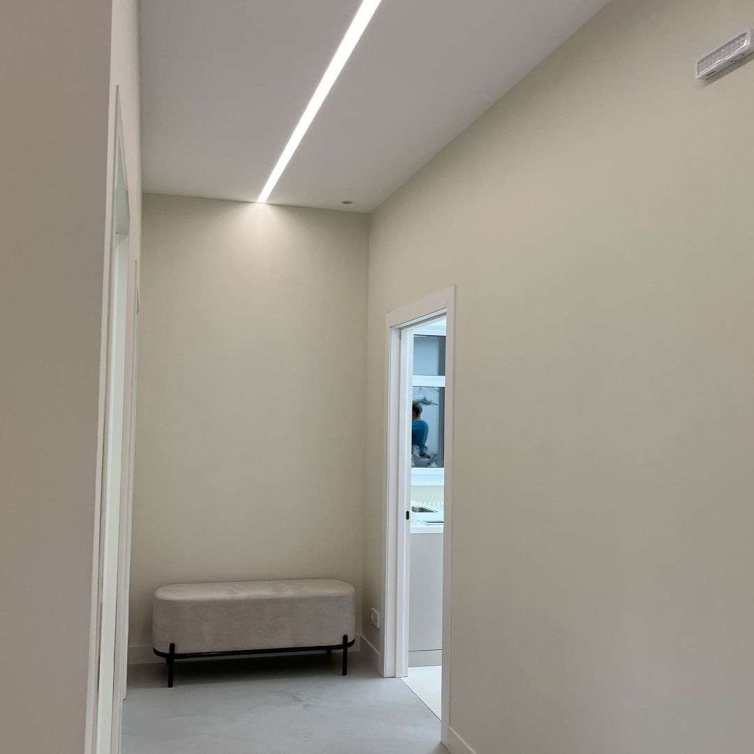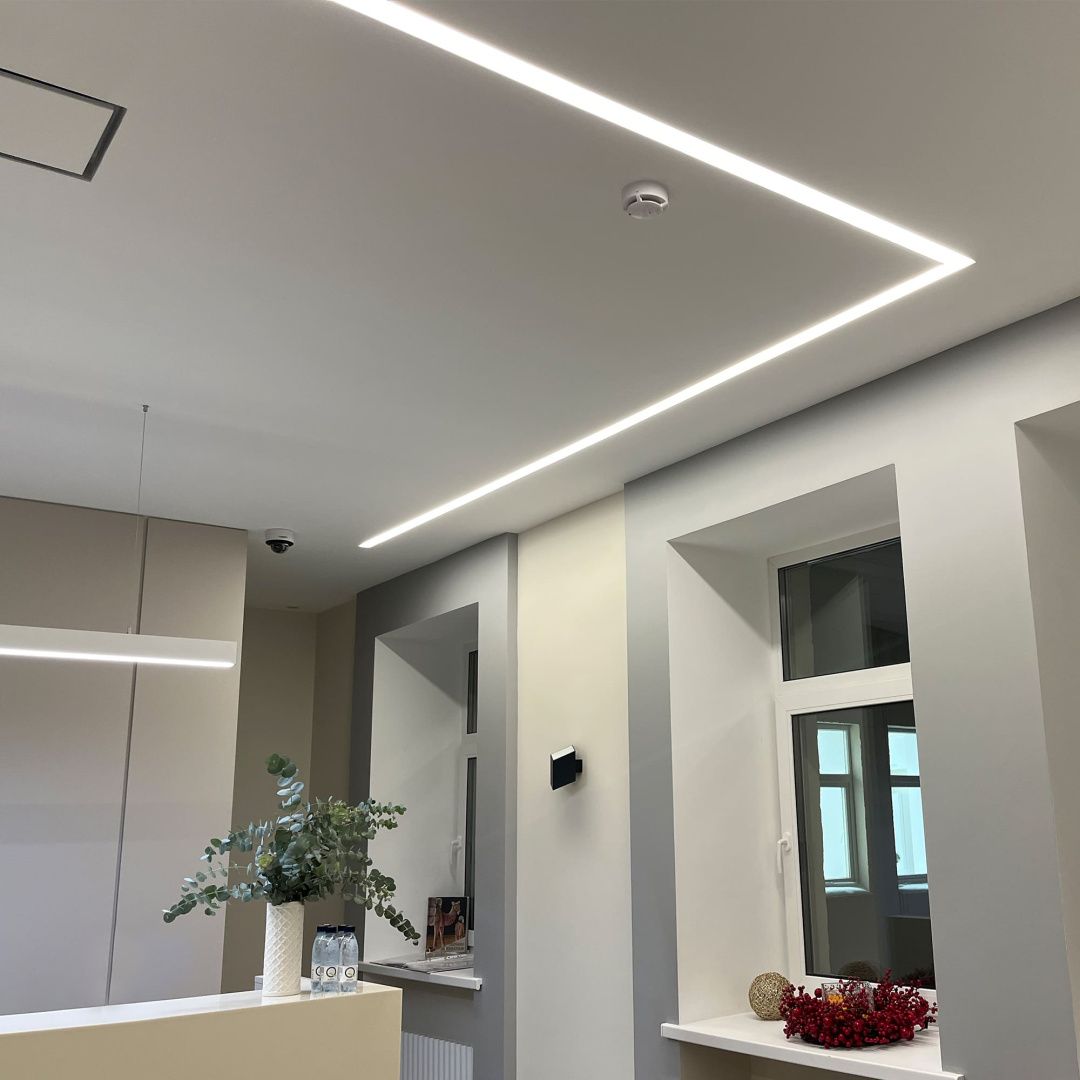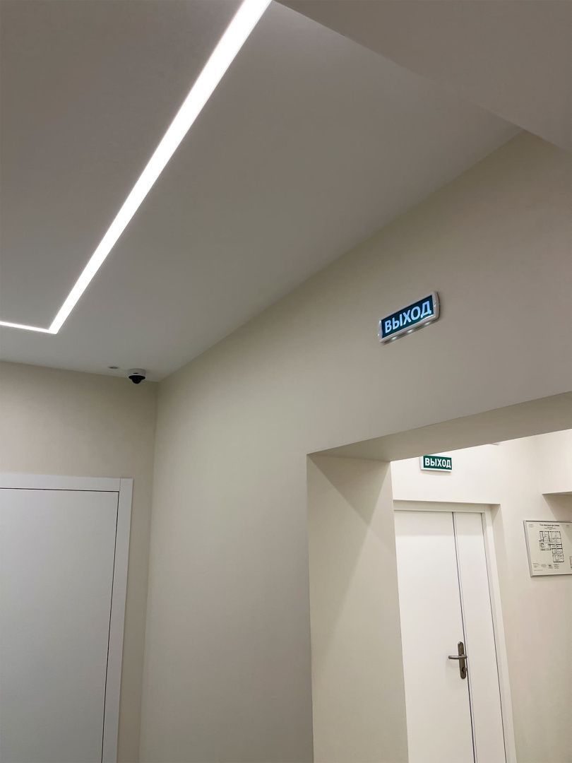 3.Для освещения зоны ресепшен, а также коридоров было предложено использовать светильники на основе встраиваемых профилей в ГКЛ.