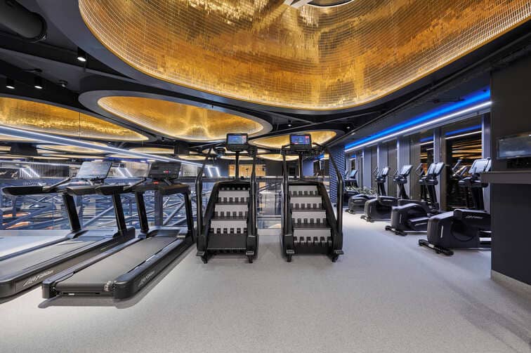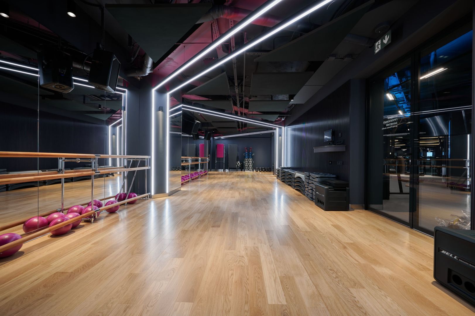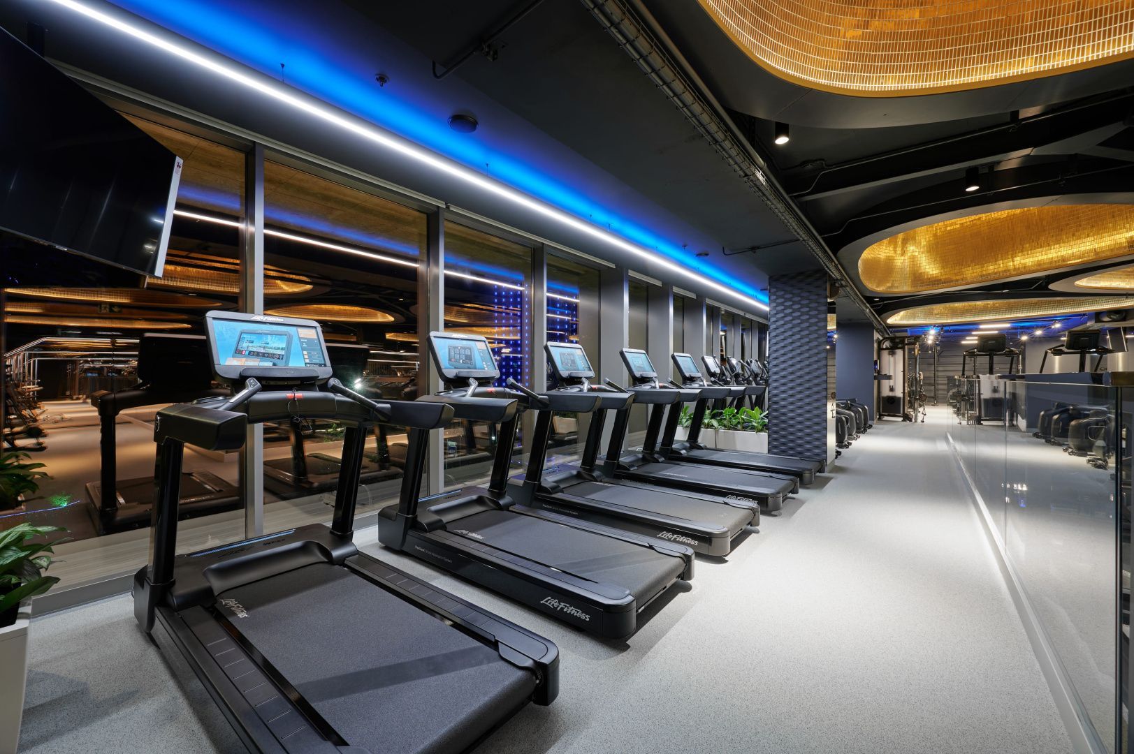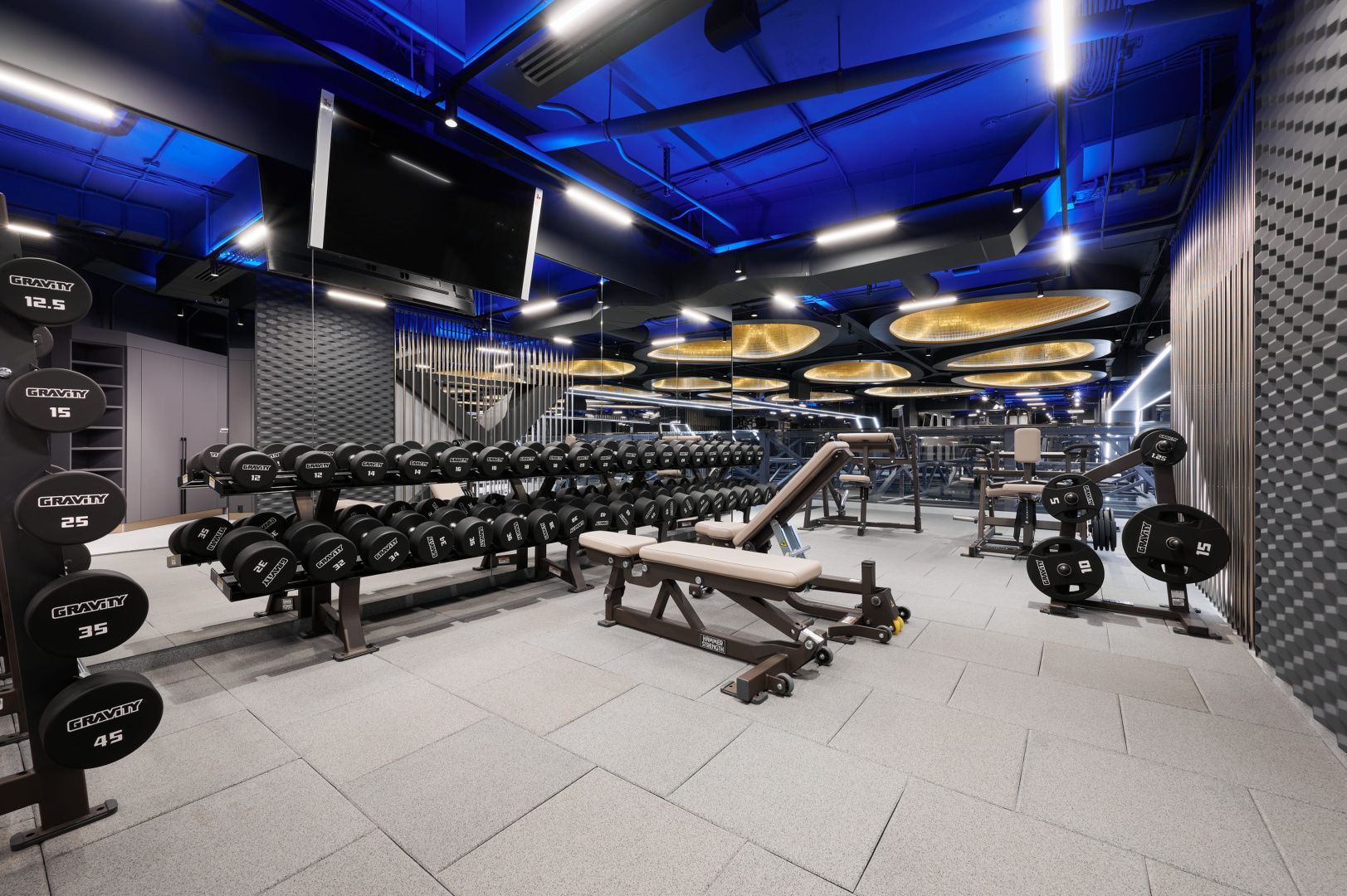 Просторные и стильные тренажерные залы клуба оборудованы новейшей техникой для предельно эффективных тренировок. Под стать инновационным методикам тренинга, освещение этих зон выполнено в футуристичном стиле благодаря сочетанию RGB лент Arlight RT-B30-10mm 24V RGB (022066(2)), световых инсталляций из гибкого неона ARL-MOONLIGHT-1515-3D 24V Warm (029424), а также лент Arlight дневного свечения RT-A60-8mm 24V Day4000 (024583(2)) и RT-A60-8mm 24V Day4000 (016144(2)).