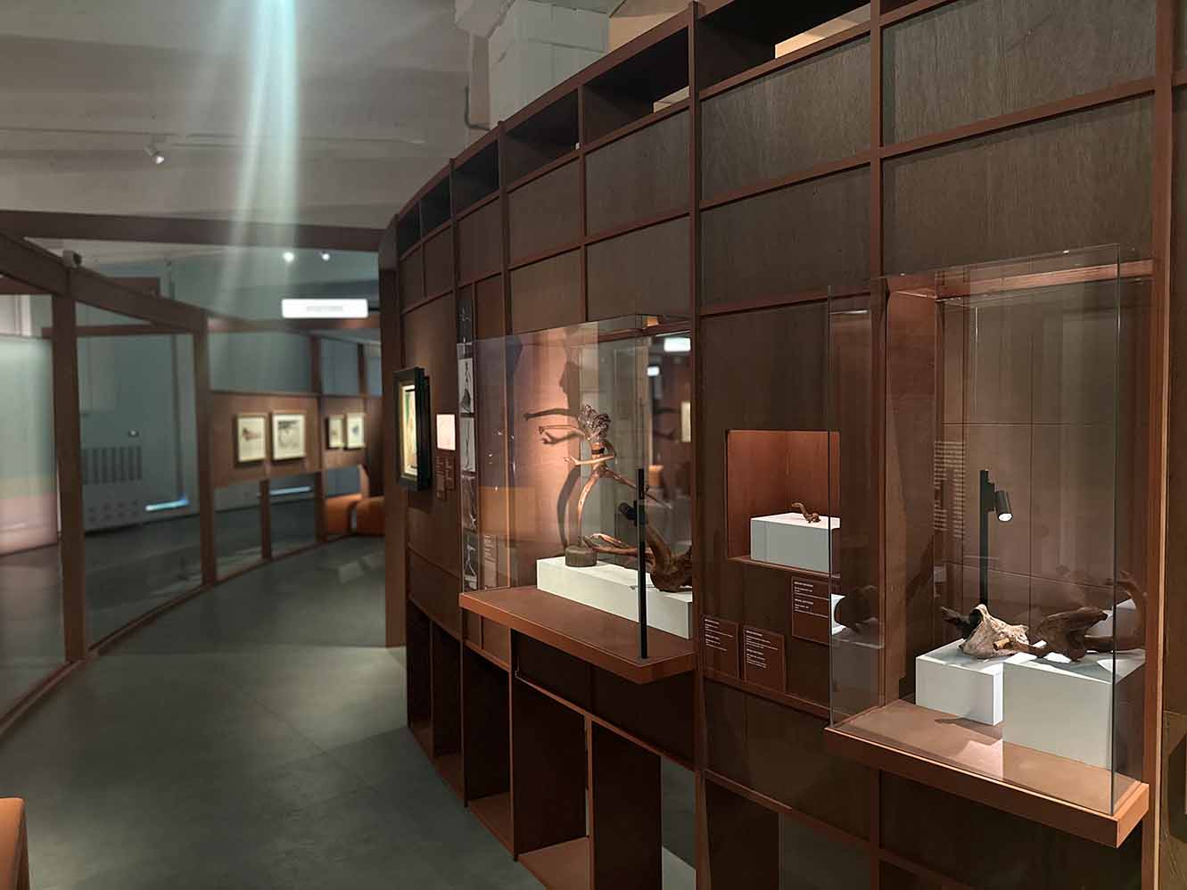 Интеграция с архитектурой пространства: светильники размещены таким образом, чтобы гармонично вписываться в интерьер и не нарушать целостность экспозиции.