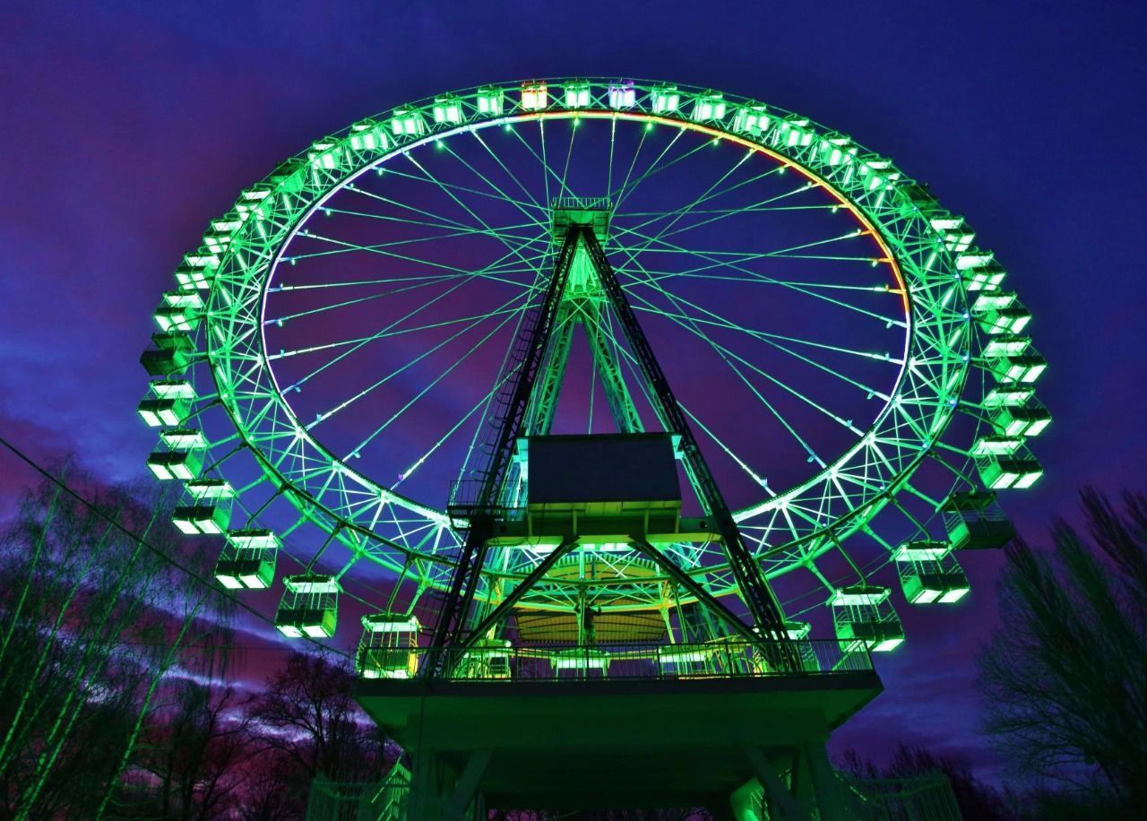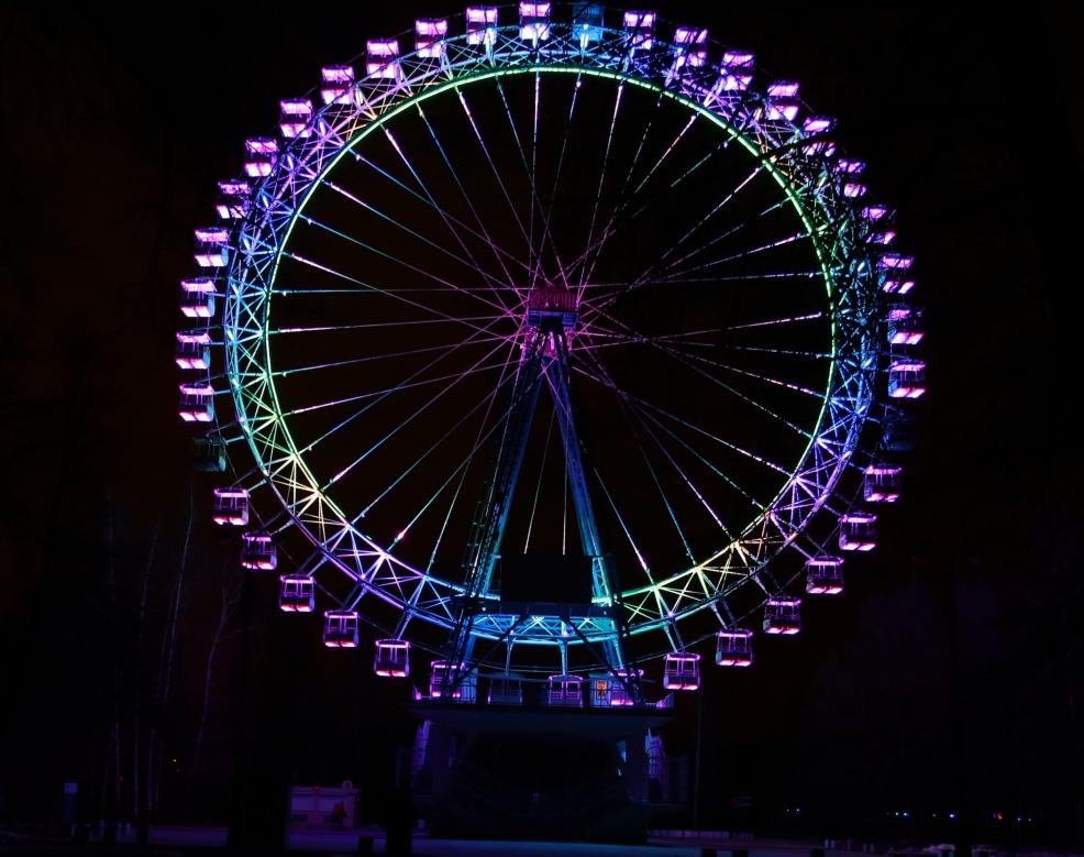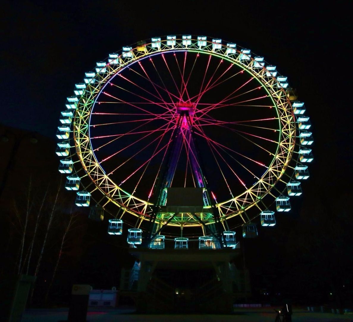 Компания Lightwerk в сентябре 2014 года произвела проектирование и поставку оборудования для колеса обозрения в парке Измайлово. По замыслу заказчика, необходимо было выполнить динамическое RGB освещение колеса в пяти независимых зонах. Одной из задач была передача управляемого сигнала на кабинки колеса. Так как они постоянно вращаются и возможности протянуть кабели управления не было, мы использовали беспроводные передатчики сигнала DMX. Была построена система из 40 приемников и главного передатчика. По данным статистики, за первые 3 месяца после установки декоративного освещения на данном аттракционе, количество посетителей увеличилось на 36%, а количество повторных посещений на 38%. Так же в сети интернет и СМИ появилось множество статей и фотографий подсвеченного аттракциона, что привело к приросту популярности парка у местных жителей, москвичей и гостей столицы. По вопросам подсветки и иллюминации аттракционов обращайтесь к нашим специалистам по телефону +7 495 740 22 16 или по электронной почте