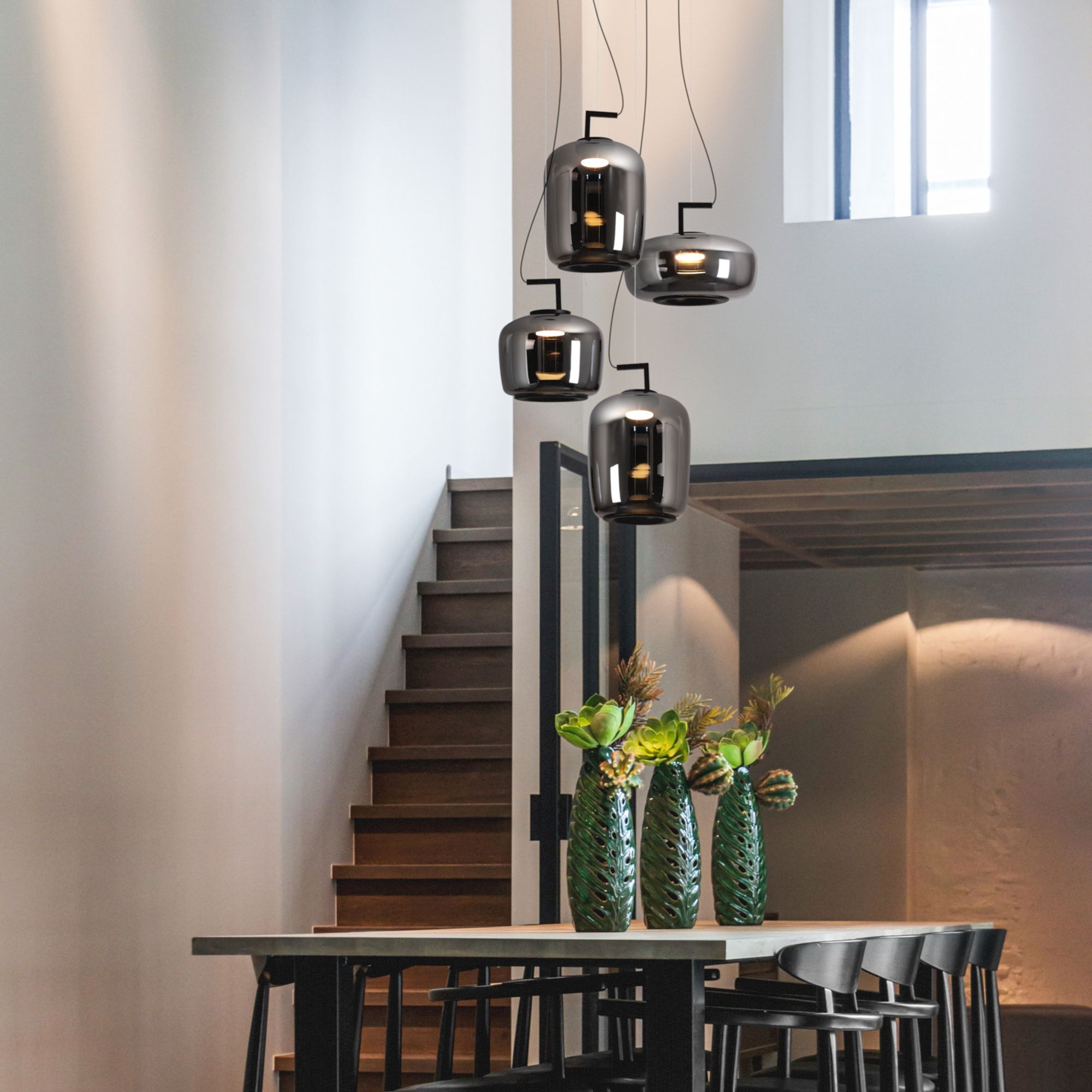 Ключевая особенность Clod — дымчатые стеклянные плафоны. Они будто легкие тучи, сквозь которые пробивается мягкий свет, создавая таинственную, притягательную атмосферу. Коллекция представлена тремя светильниками, каждый из которых обладает своей уникальной формой и размером. Это дает возможность комбинировать их в динамичные, многослойные композиции, играя с объемом и пространством.